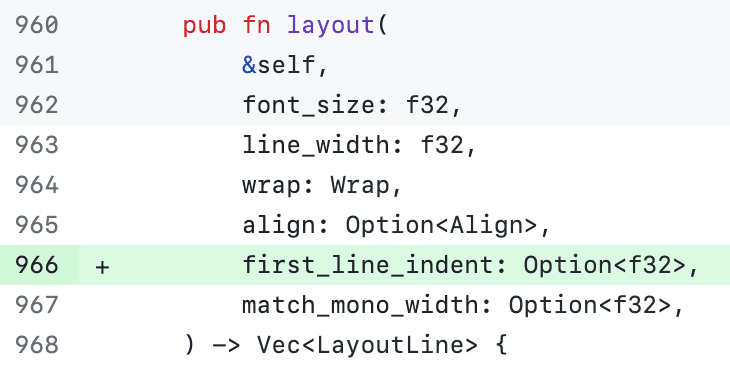 On the Linux side, we added the functionality of indentation to COSMIC Text, which is an open source library. We hope to merge the changes from our fork upstream soon! A small snippet of the core changes are included below: