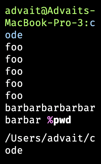 You can imagine that we can no longer have two rectangles neatly stacked on top of each other, since the last line of the prompt and the first line of the command should now exist on the same row. To solve this issue, we split the prompt into two separate grids. In this case, the first prompt grid would cover the first five “foo”s, and the second prompt grid would cover the “bar %.” This allows us to put the input editor component inline beside the prompt.