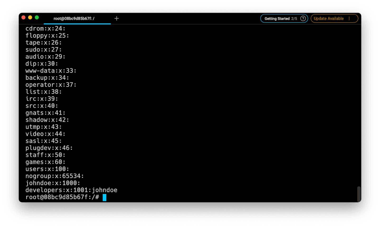 To verify that a user was successfully added to the sudoers group, we can display the content of the /etc/group file using the cat command, which contains the list of groups (and their users) registered on the system.