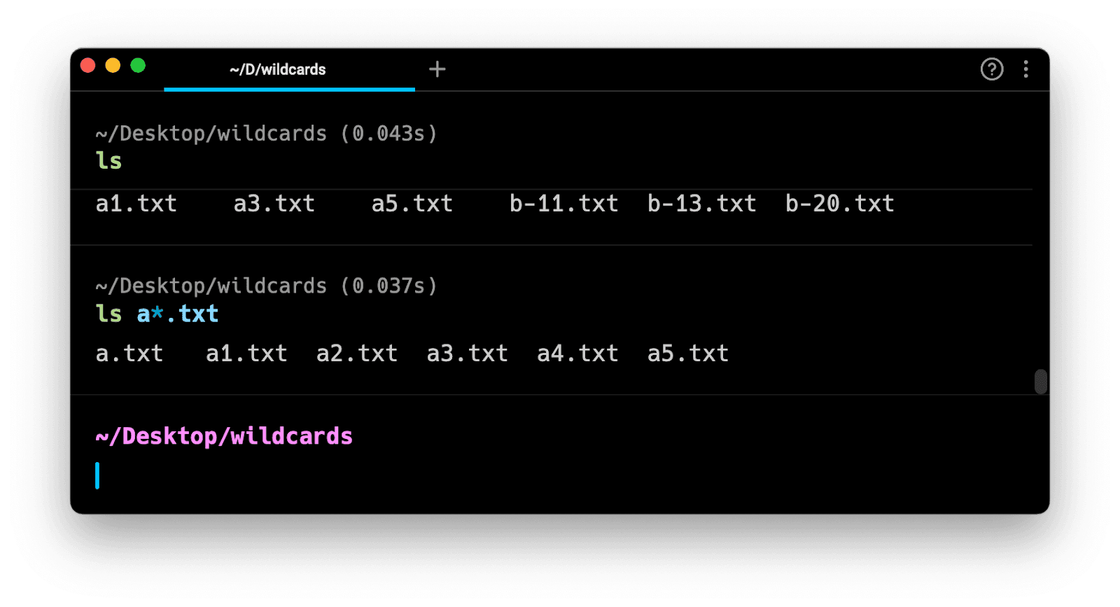 An asterisk also matches zero characters (a.txt): ls a*.txt