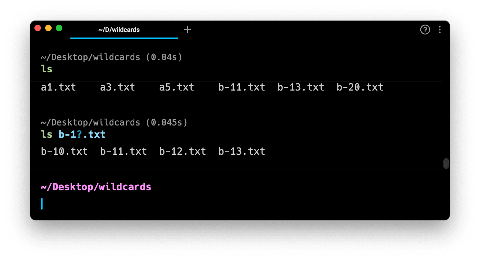 A question mark matches a single character: b-1?.txt