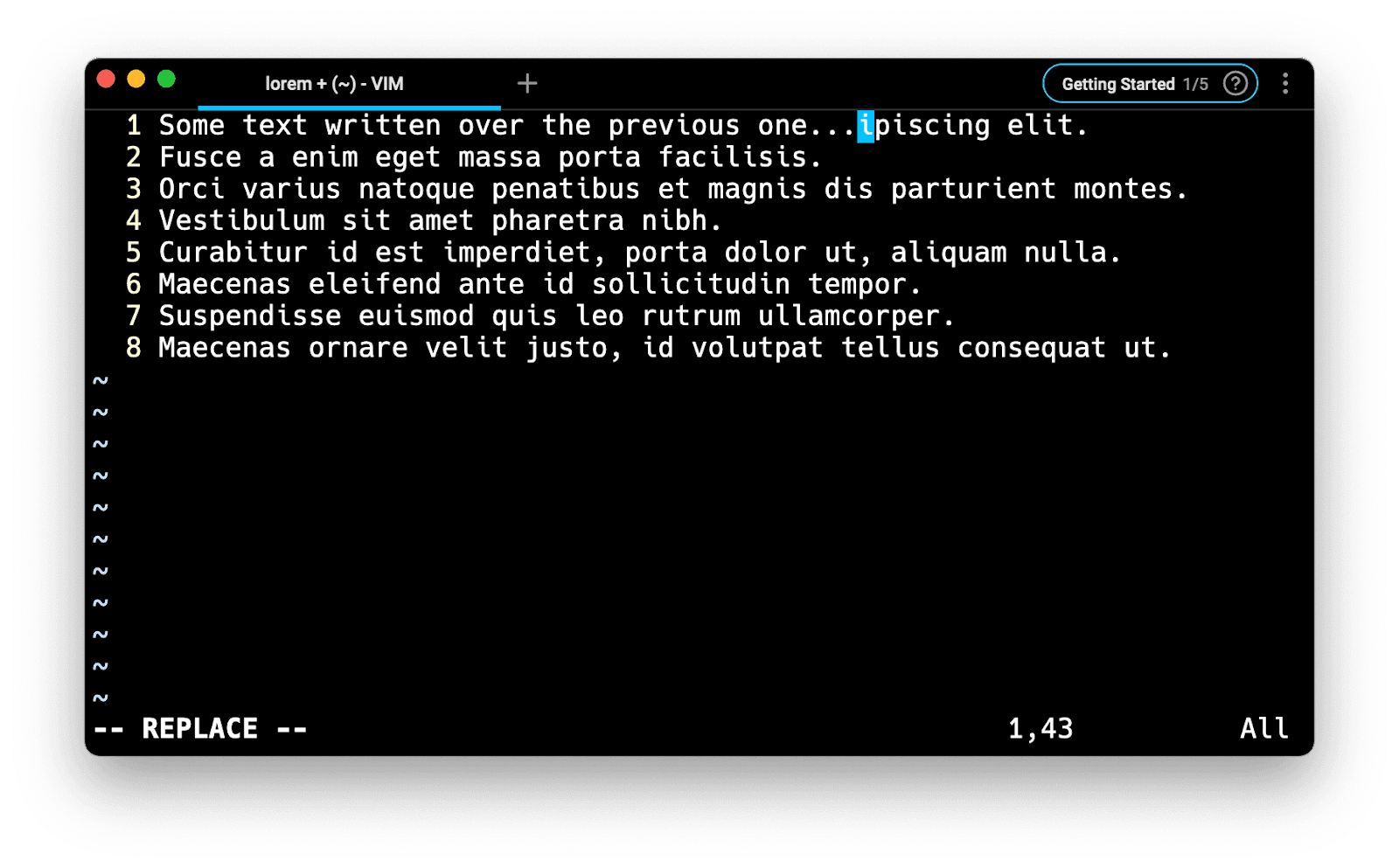 When you’re done typing, simply press on <Esc> to come back to the Normal mode.