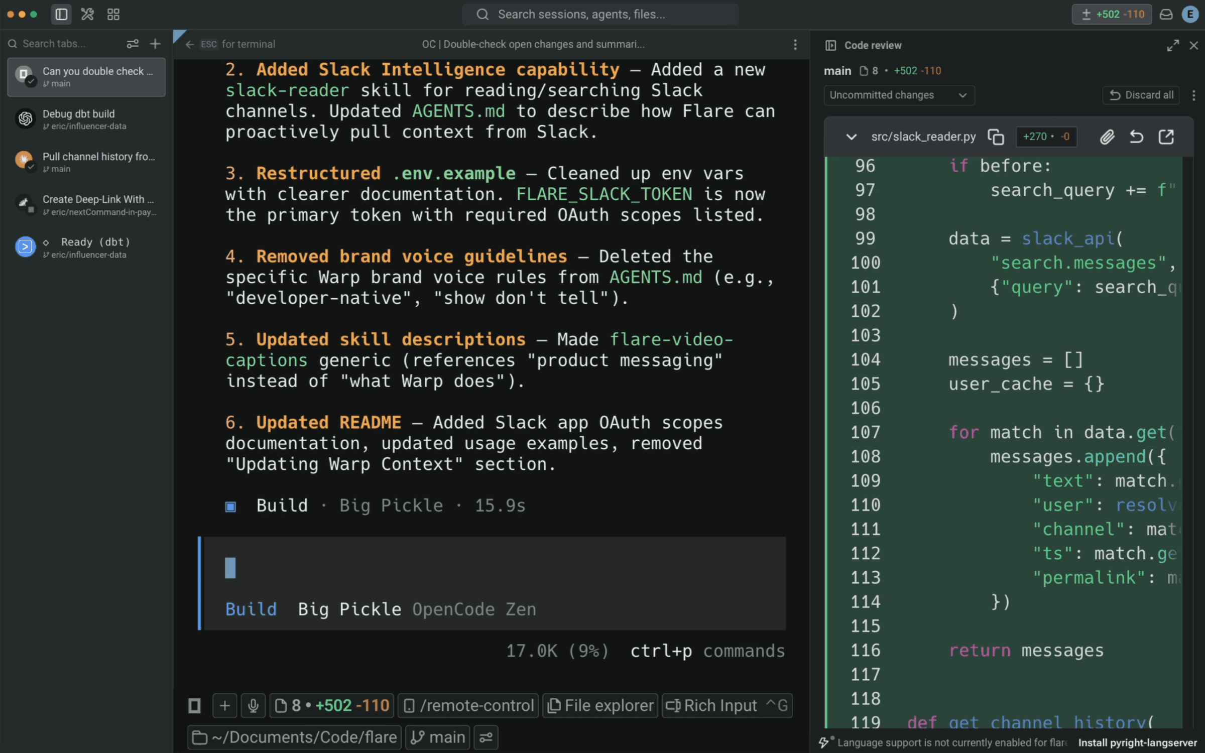 Warp’s agentic development environment meets Opencode
