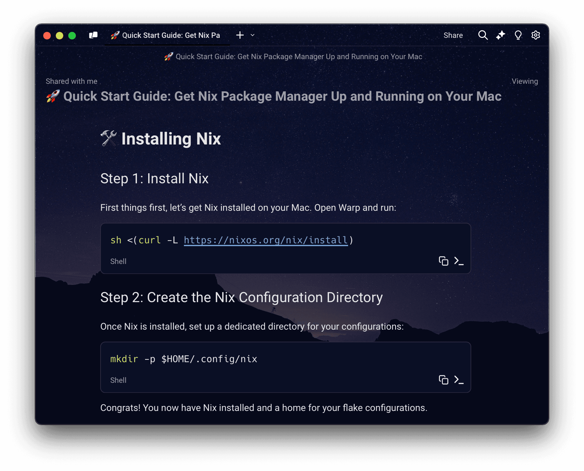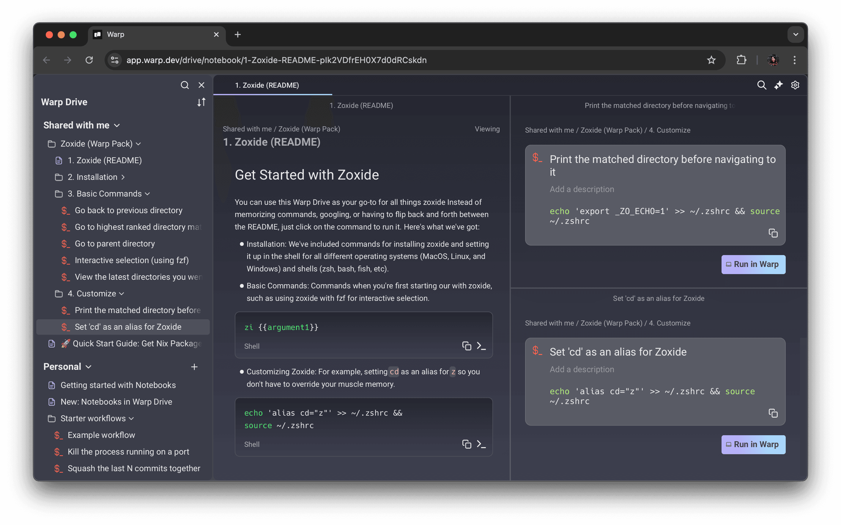 With the new Warp Drive sharing experience, you can share objects via specific email addresses or public links, all viewable on the web – even without a Warp account. Try out this starter pack we created for one of our favorite tools, Zoxide, to see for yourself!