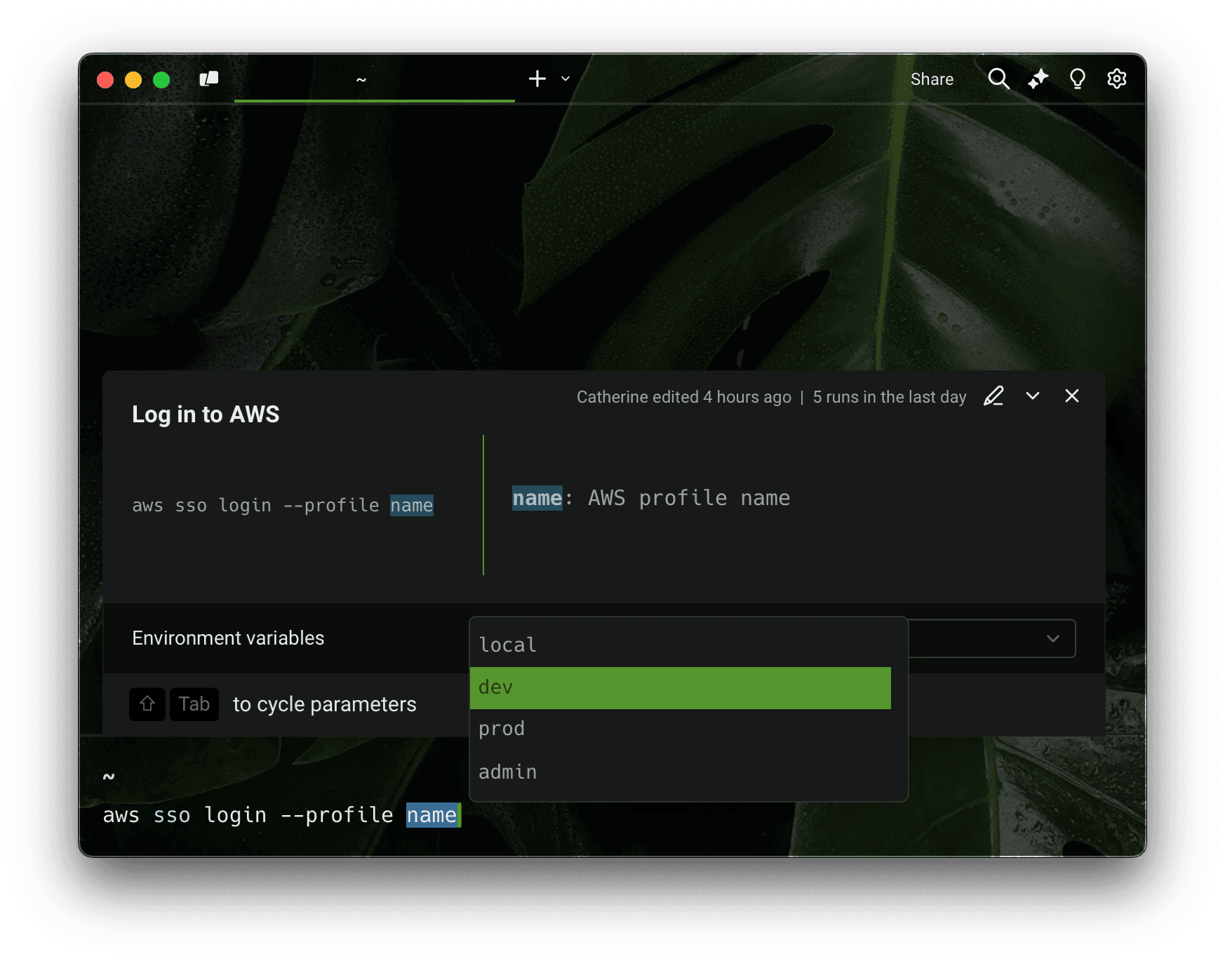 Switching between dev environments and worried about accidentally nuking your prod database? Warp’s environment variables can help. Similar to .env files, they let you: