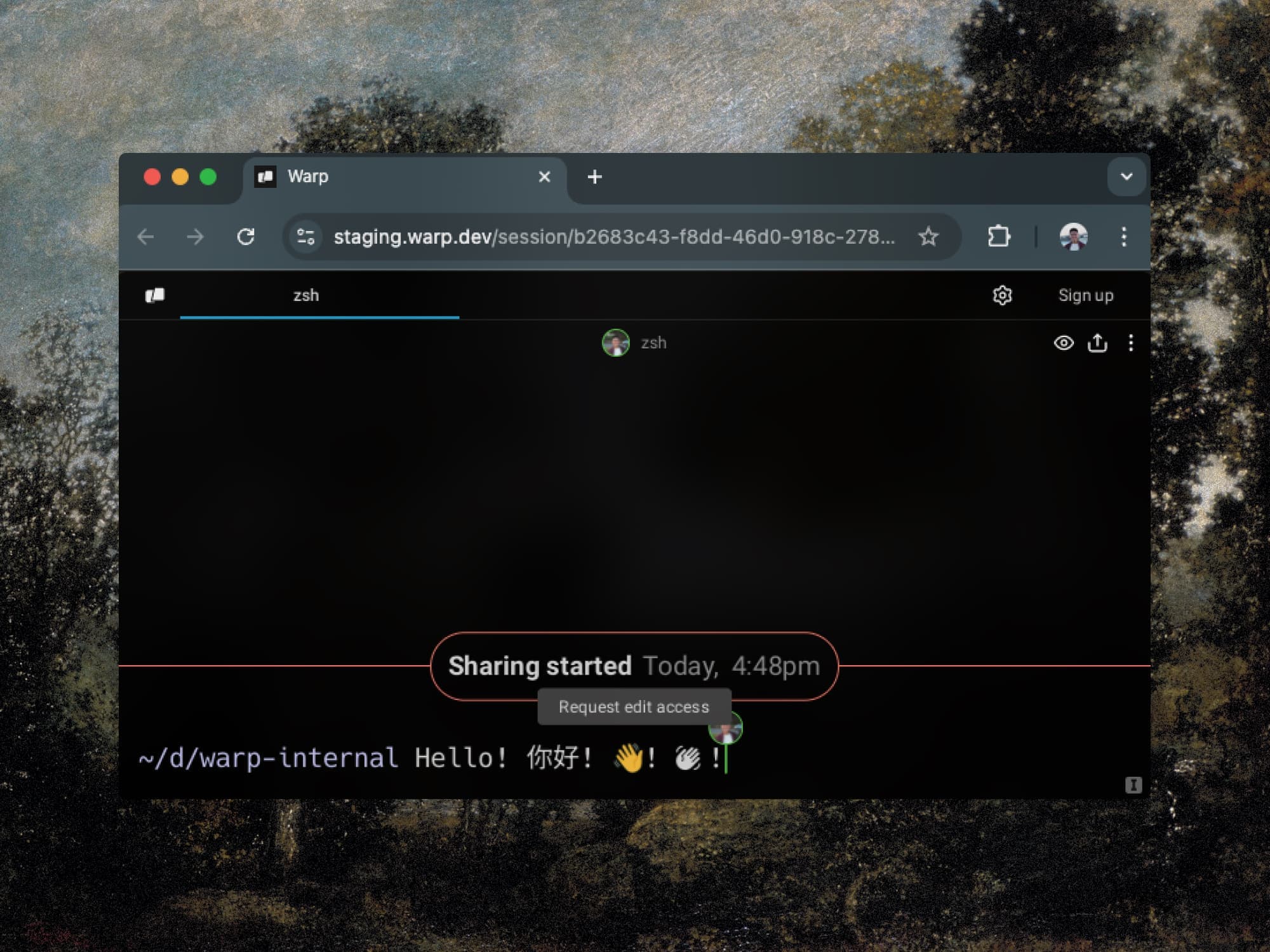 As a result of our efforts, we were able to build out a web version of Warp with support for rendering the different scripts, icons, and symbols that you would expect from a native terminal, while not compromising on user experience. Font fallback was a fun example of the types of technical challenges we faced when building for WASM: needing to build out something from scratch that developers would usually take for granted. We’re excited to be launching Warp on the web and getting this into the hands of our users!