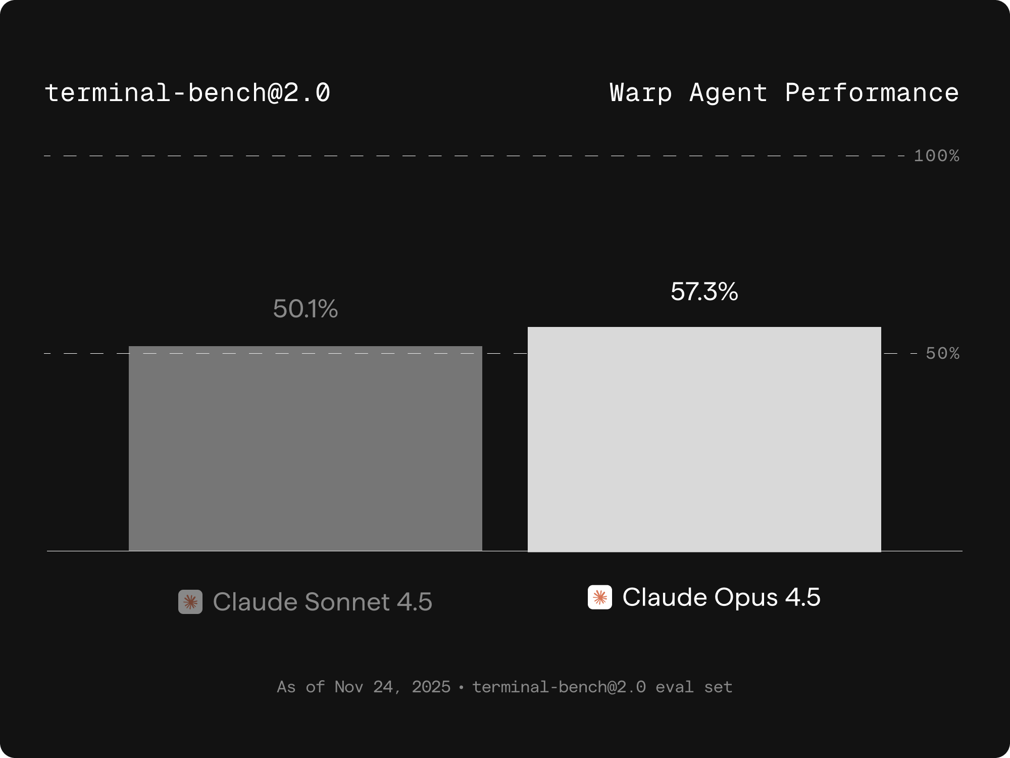 Anthropic’s latest model, Claude Opus 4.5, is now available for all Warp users.