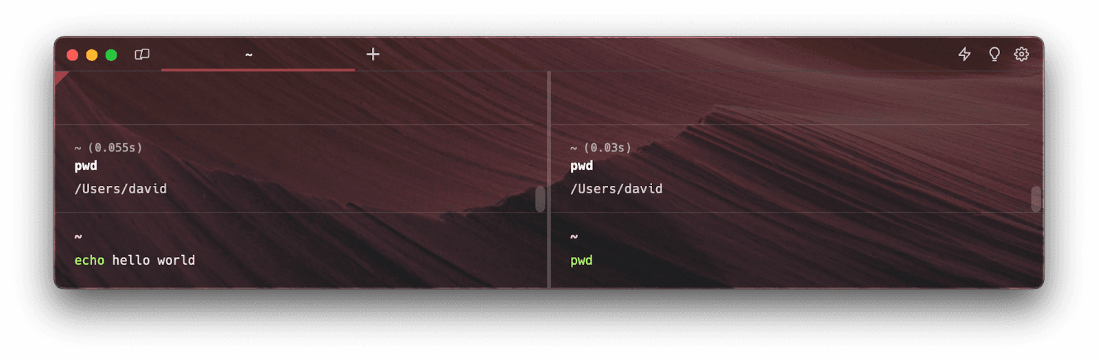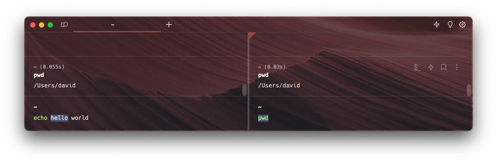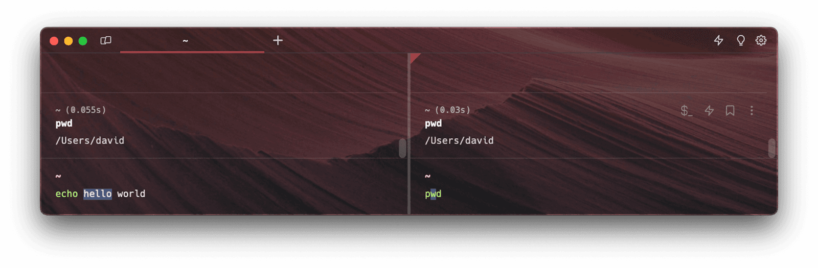 The questions in group one are about not cluttering our user interface. Another simplification came in handy: only show the cursor and additional UI elements on the focused terminal input. Additionally, the focused terminal is the only one that is actually performing checks for autosuggestions, completions, or running any other more advanced functionality. The sync “destination” terminal sessions are only receiving and applying updates to their input buffer strings. This also keeps the feature performant, which is another one of our product principles (build for speed).