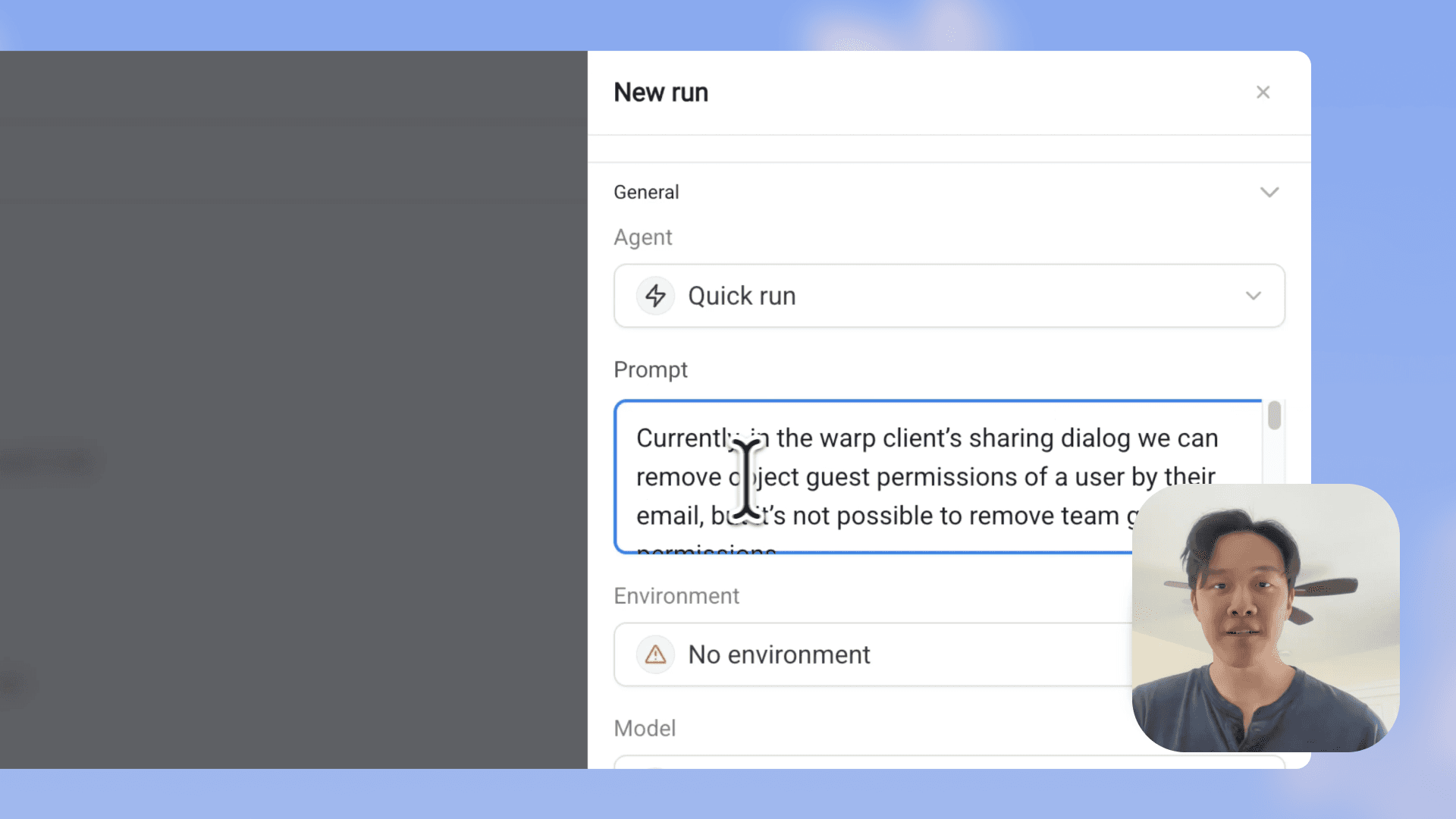 Watch Roland (Product Engineer at Warp) generate a fix to our platform across our server and client repositories in a single prompt... all while he's on a lunch break.