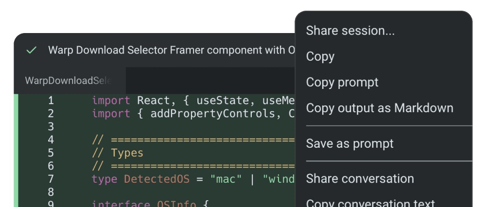Warp makes it easy to write good prompts. Reference files and images in your prompts and even use voice transcription from Wispr Flow.