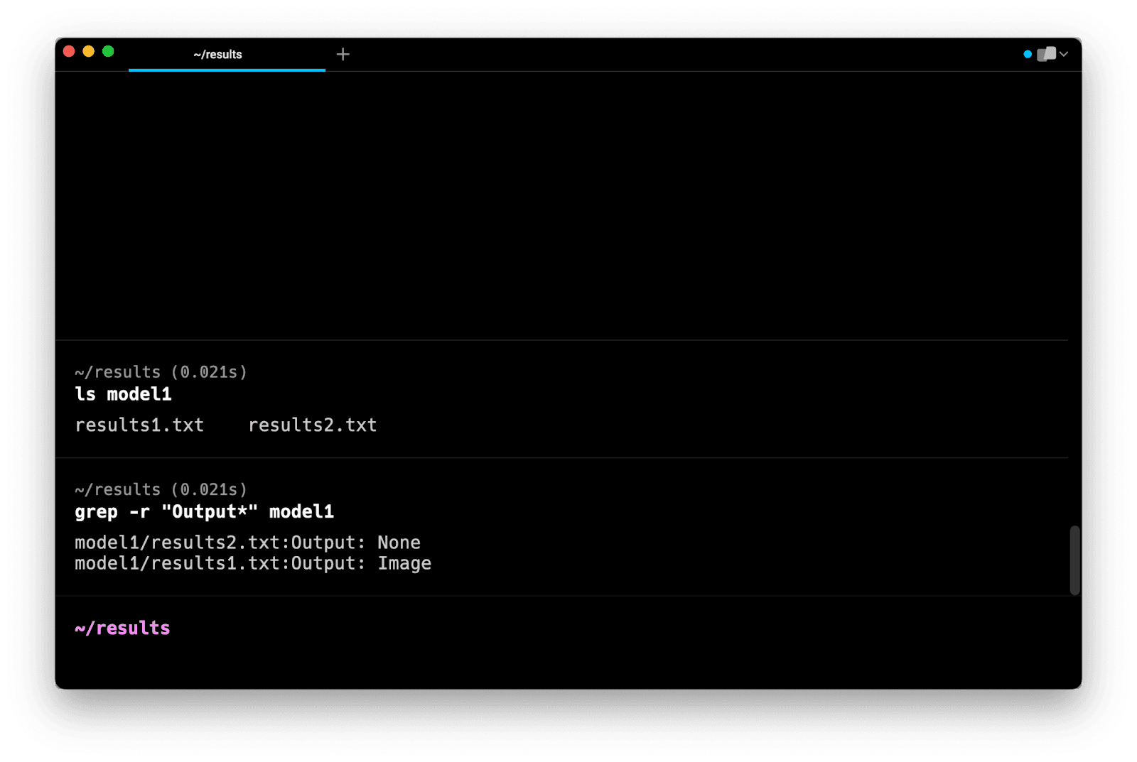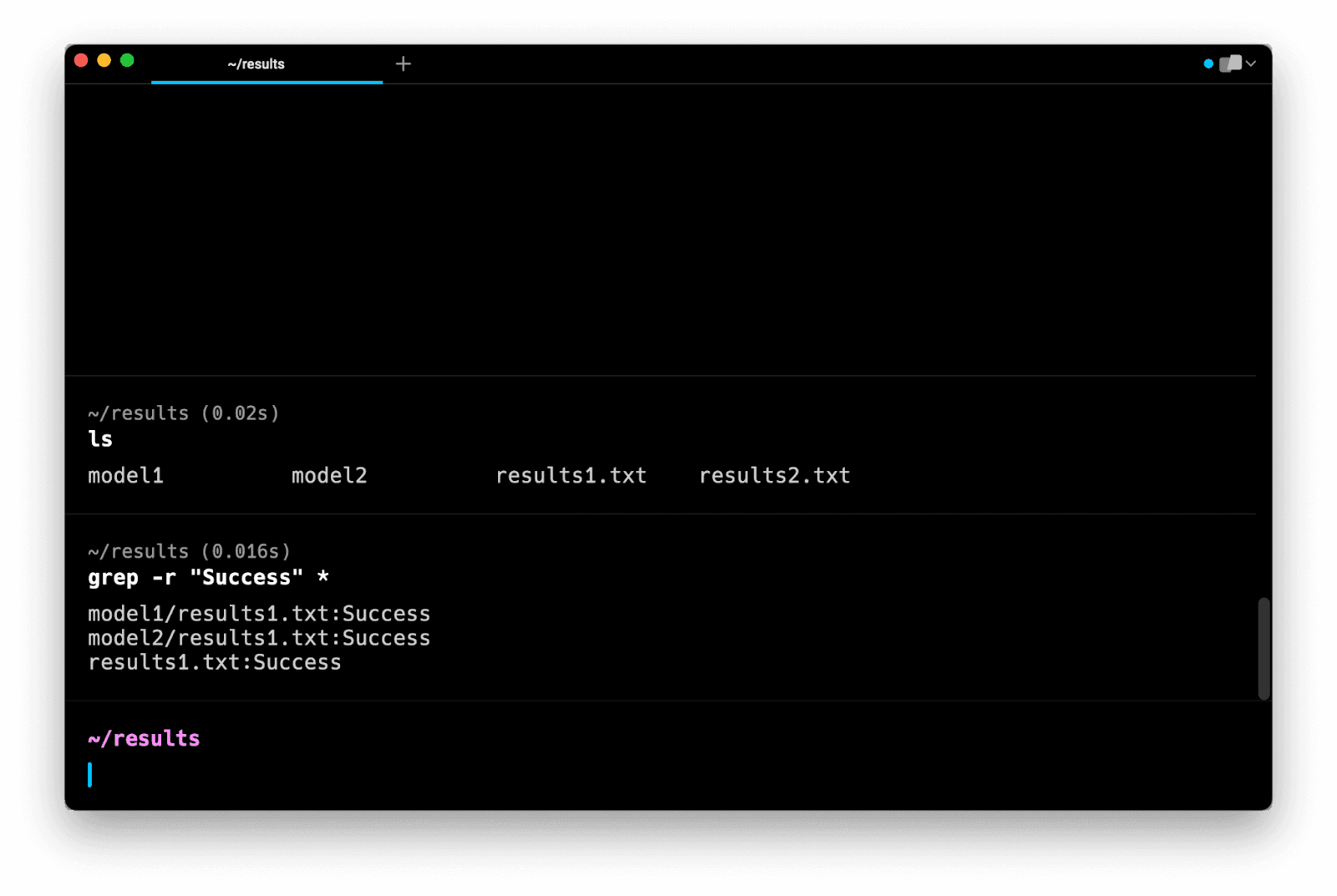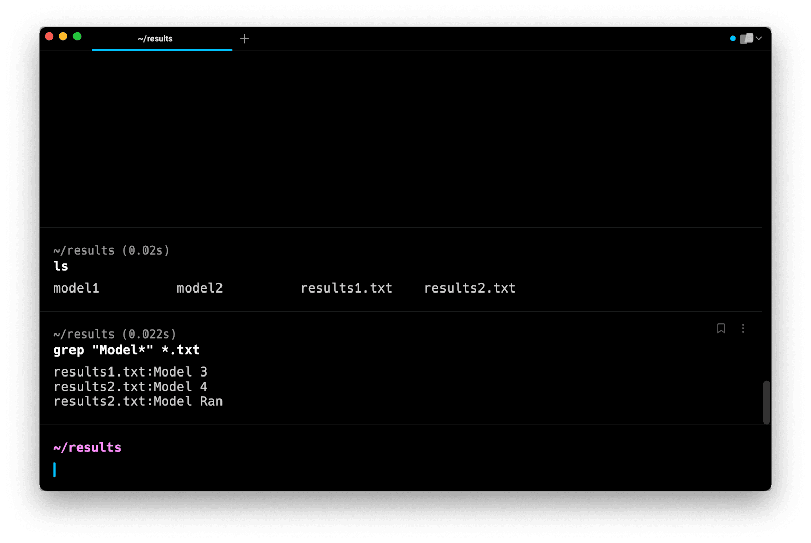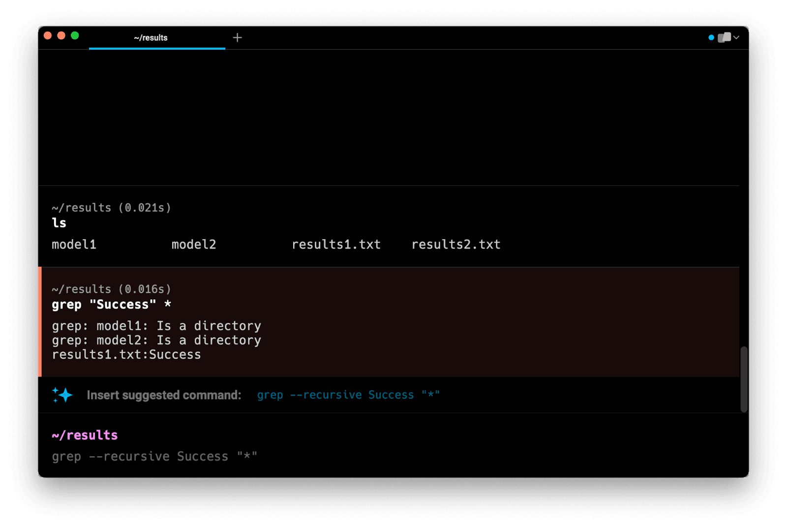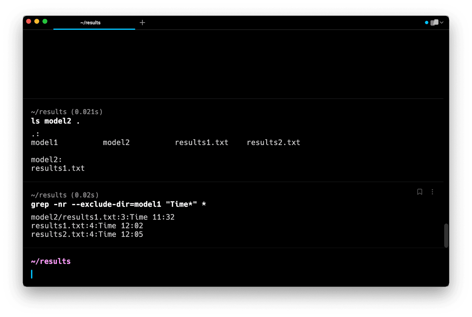 Note that this command does not search in subdirectories. Instead, it tells you that model1 and model2 are directories and that they are not searched.