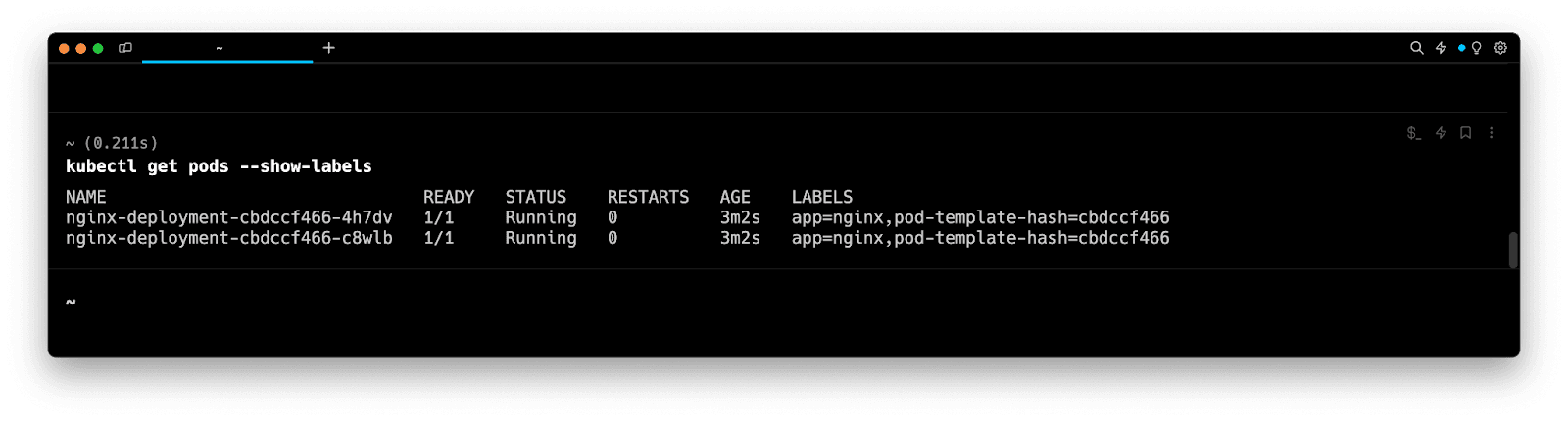 Upon execution, the above command will output an additional column showing any labels associated with Pods.