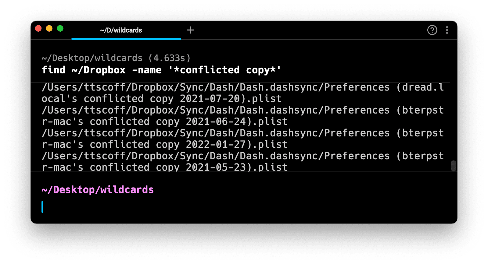 Examples of commands with wildcards
